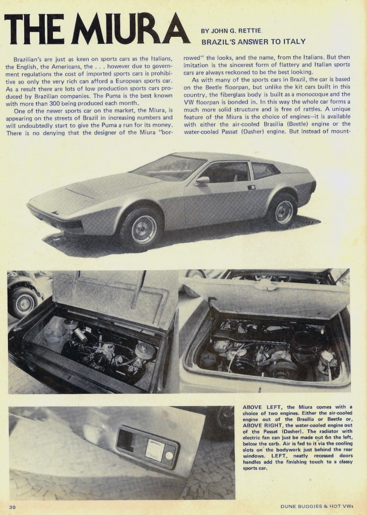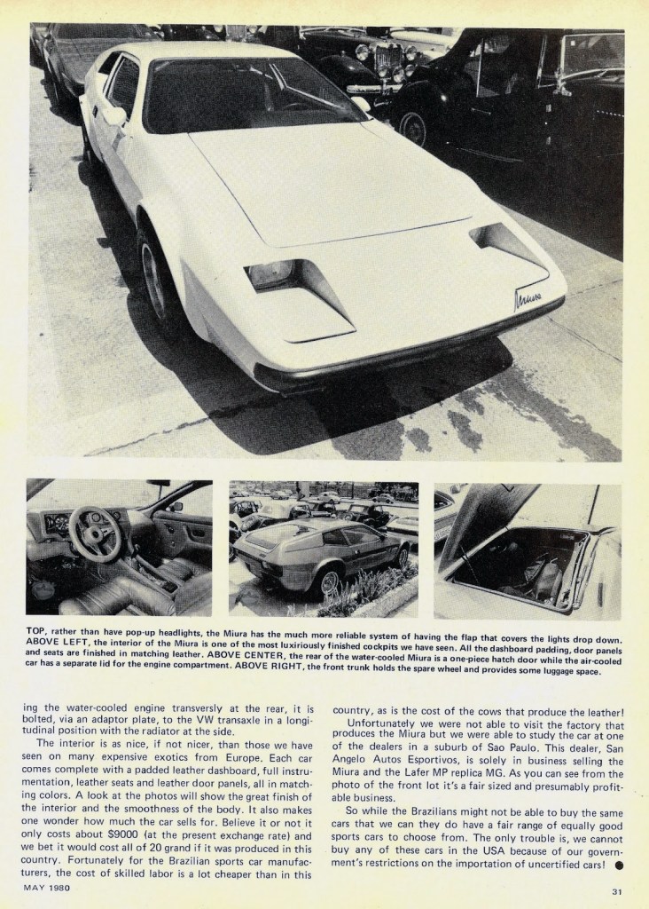 Reportagem da Revista americana HOT WVs do Miura em 1980 na revenda SANT’ANGELO